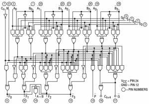 They are large and relatively complex chips. We thought it is more fun to stick to simpler chips. Also, the “minus A” function is missing in the 74181, and the Gigatron uses that for evaluating conditional branches. And while we would still need two of them to make an 8-bit ALU, they have become difficult to obtain. Last time we checked, Jameco had 6 remaining in stock. We think this is because the 74181 doesn’t have a market nowadays and chipmakers stopped producing them after everything had to be made RoHS compliant. The simpler chips from the 7400-series still have a useful glue-logic function in modern designs and many are still manufactured today for that reason.