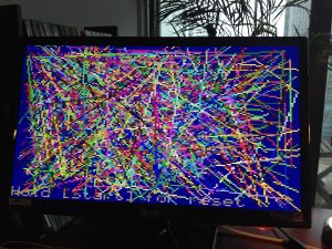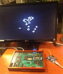 After some discussion with the emulator guys, we have agreed on a file format for both real boards and emulators: GT1 files. At67 quickly coded some demos in his vCPU assembler and produced GT1 files for them. These work in his great emulator. But his kit hasn’t arrived yet, so I tested it for him. See here “life3.gt1” and “lines.gt1” loaded on my development board with ROM v1.