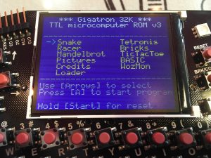 We are still a bit short on tutorials and tools to make the Gigatron more accessible for hacking. But that hasn’t stopped some brave souls from figuring it out for themselves. Phil made a great emulator that runs realtime in a browser, in javascript. At67 wrote a stand-alone vCPU assembler to go with his own emulator. Some started to make their own operating system. One buyer announced plans to rewire the instruction decoder in order to get just the right 8-bit instructions for the application he has in mind. Drogon wrote some GCL, made a ROM file, stripped the object code from it, copied that in an Arduino to send it to the Loader and execute it from RAM. Speechless… [Edit: it is MUCH simpler now to do the same today. The tools keep improving every week]
