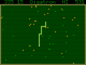 The game starts automatically. If the player doesn’t change direction before reaching the first wall, the Gigatron plays a game by itself.