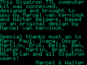 Many thanks to those who have helped, directly or indirectly, in making the Gigatron to what it is today. Your enthusiasm, support, ideas and other contributions are invaluable!